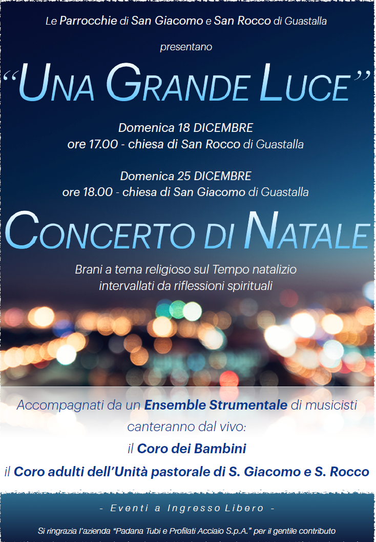 Cari Amici, siamo lieti di invitarvi al Concerto di Natale “Una grande Luce”, che sarà presentato nei giorni