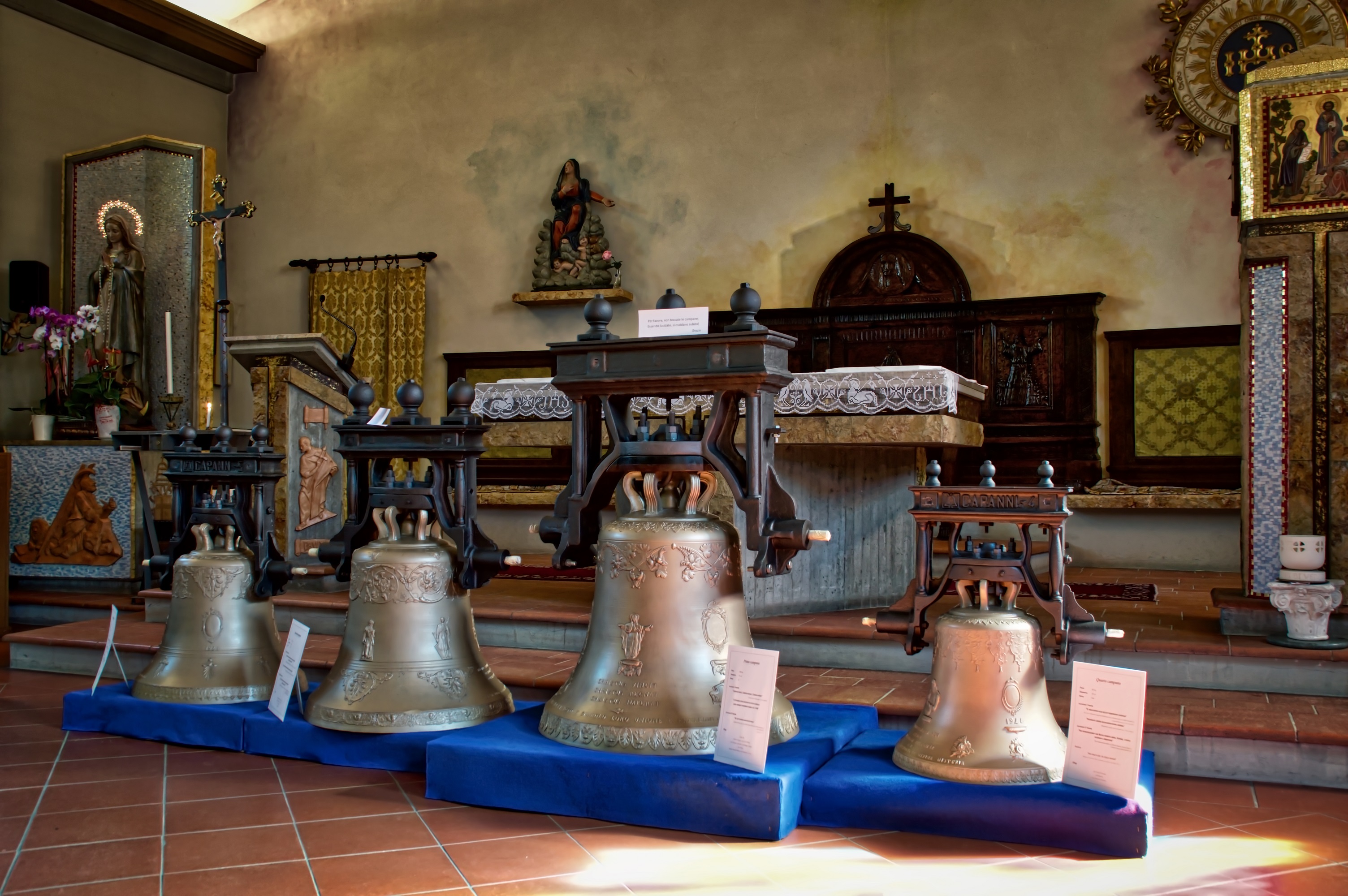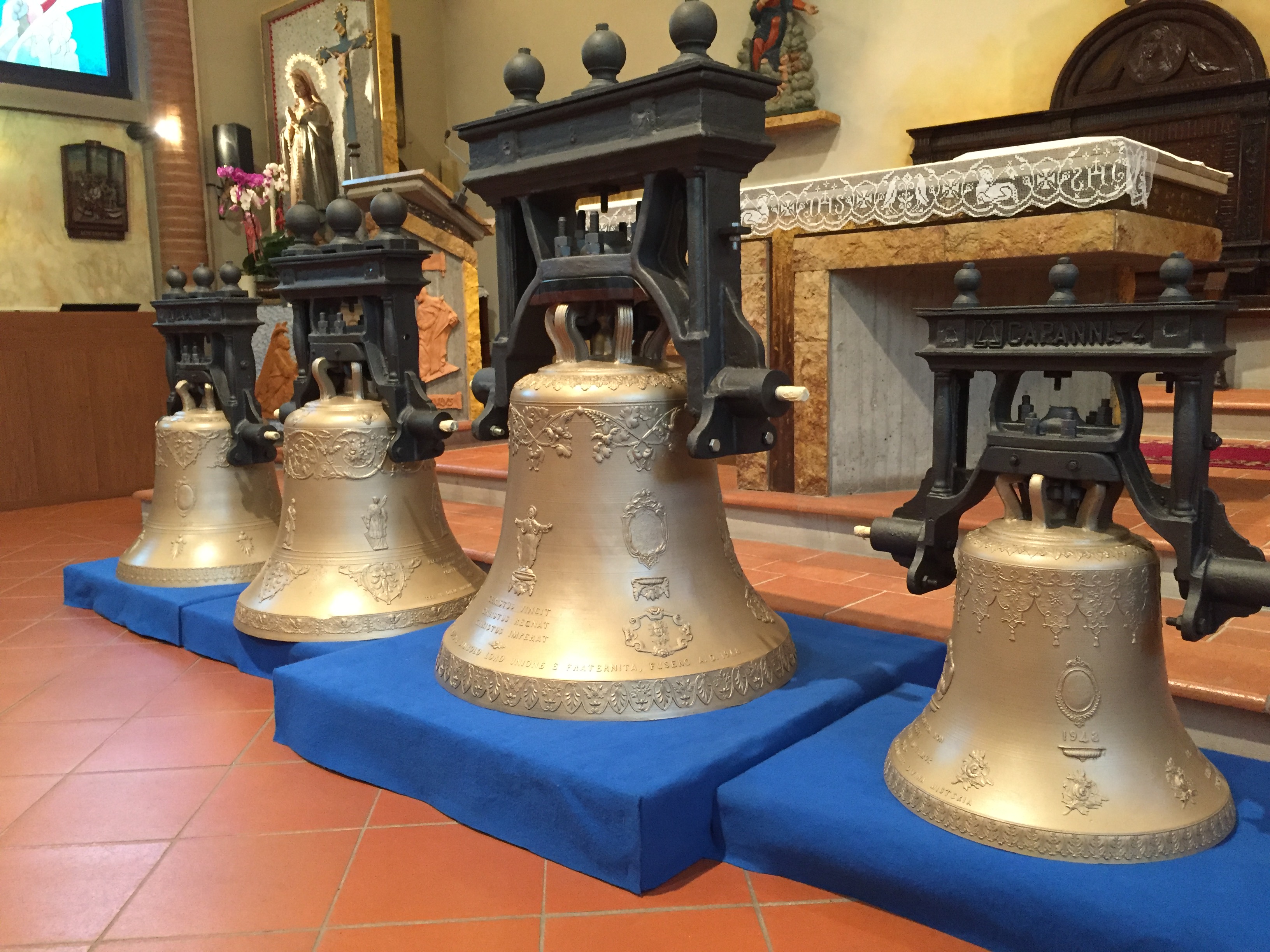 L’attesa è stata però ampiamente ripagata: sono infatti esposte in Chiesa, fino a domenica sera, le quattro campane riportate all’originario splendore.