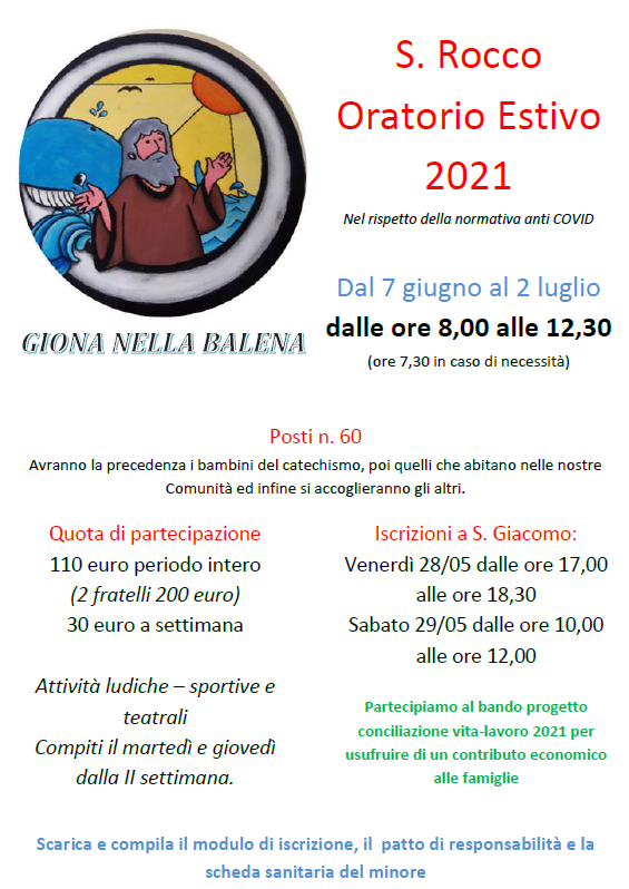 • Oratorio Estivo 2025 (dal 9 al 27 giugno) – Attività estiva “extra” 2025 (dal 1 al 25 luglio) – A SAN ROCCO