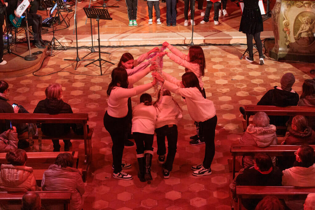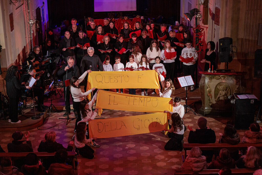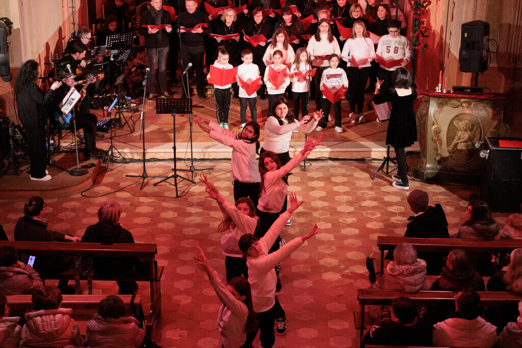 Eseguito interamente dal vivo, tra musiche, parti solistiche, dialoghi, balletti ed immagini a tema, questo concerto-rappresentazione (che ha coinvolto nella sua realizzazione sia adulti che bambini e ragazzini), ha saputo “prendere per mano” gli spettatori, accompagnandoli – con la dolcezza di un racconto intimo e suggestivo – nel cuore del mistero di luce della Natività.