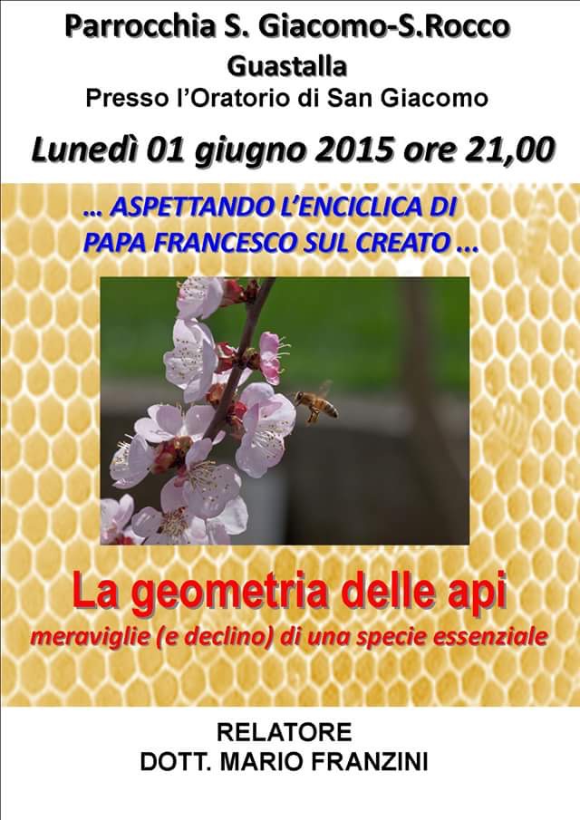 Lunedi 1 giugno alle ore 21.00 presso l’Oratorio di San Giacomo il Dott. Mario Franzini presenta la relazione “La geometria delle api – meraviglie e declino di una specie essenziale”.